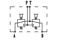 當(dāng)手柄在“中停”位置時(shí), P口關(guān)閉, A、B口不工作;當(dāng)手柄在“舉升”位置時(shí),P口與A口相通,B口不工作;當(dāng)手柄在“下降”位置時(shí),P口與B口相通,P口與A口相通,A口不工作。