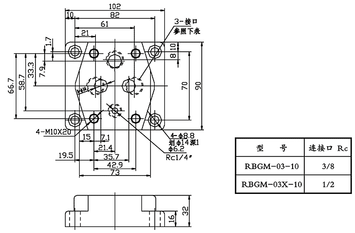 外形及安裝連接尺寸: RBG-03