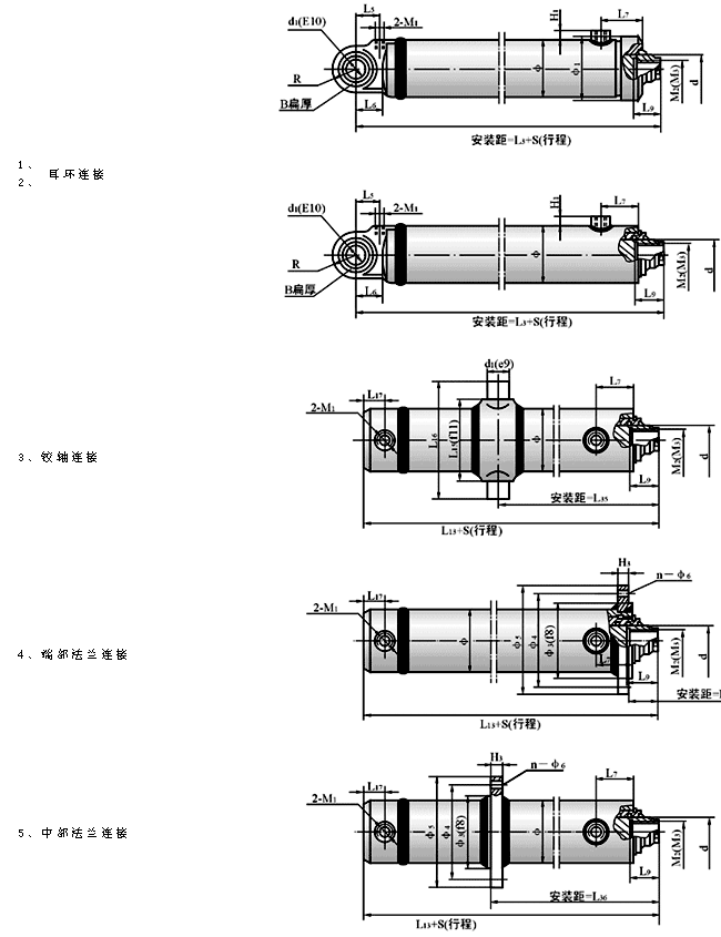 4、鉸軸連接的行程不得小于表中最小行程S1值。