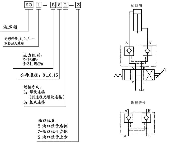 用途與特征: S0型液壓鎖(雙向液壓鎖)用于工程機(jī)械液壓系統(tǒng)中,直接裝在液壓缸上,可長時(shí)間保持液壓缸活塞桿的位置不變。該液壓鎖主要用于起重機(jī)械,礦山機(jī)械或其它機(jī)械的液壓系統(tǒng)中。 型號說明: