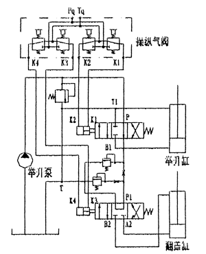 4(2)KQF型操縱氣閥的原始位置Pq口與T口是封閉的,各控制口K與TQ口相通。搬動手柄可在四個或二個不同角度。該閥的工作原理示意圖如下