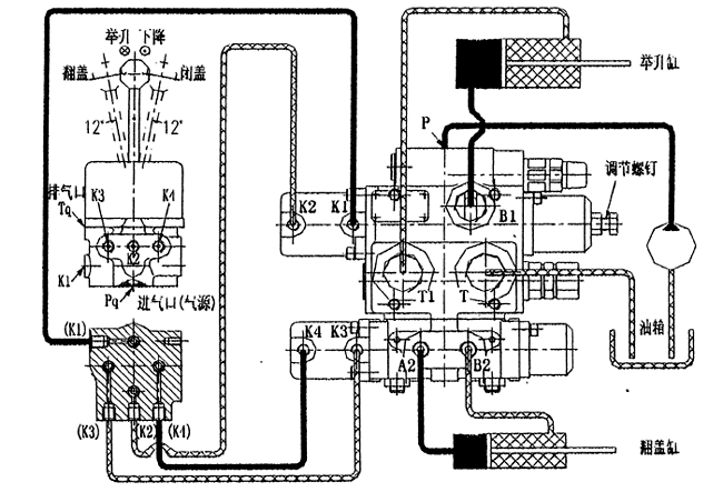 4KQF型操縱氣閥與QDF-L20F-A型氣控多路閥應(yīng)用連接圖