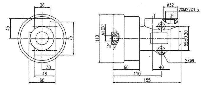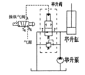 用途與特征: QF—L15型氣控舉升閥是我公司根據(jù)氣液控制系統(tǒng)而設(shè)計(jì)制造的氣動(dòng)控制換向閥,適用于重載自卸車液壓舉升系統(tǒng)。該閥先導(dǎo)控制部分以壓縮空氣為工作介質(zhì),通過氣缸動(dòng)作推動(dòng)主閥芯的開或閉,從而轉(zhuǎn)換工作機(jī)能,在液壓舉升系統(tǒng)中起接通或卸荷作用,實(shí)現(xiàn)自卸汽車車箱的舉升和下降。 工作原理: QF—L15型氣控舉升閥的原始位置P口與T口是連通的(常開式結(jié)構(gòu))。該閥工作時(shí),利用壓縮空氣通過氣缸推動(dòng)閥芯封閉,油路由常通位置轉(zhuǎn)為工作位置,即實(shí)現(xiàn)車廂的舉升;當(dāng)壓力超過溢流閥調(diào)定壓力時(shí),P口端壓力油克服彈簧推力,使P口與T口接通油液流入油箱。切斷氣源,系統(tǒng)卸荷車廂下降。該閥的工作原理示意圖如下。 技術(shù)參數(shù)/工作油液: 1.工作壓力:16 MPa 2.工作流量:100 L/min 3.控制氣壓.0.4—0.8 MPa 4.溫度范圍:-20一+80(C°) 5.粘度范圍:10~400 (mm2/S) 6.過慮精度:≤10 (μm) 注:油液最高污染等級(jí)按GB/T14039之19/16執(zhí)行。 型號(hào)說明: