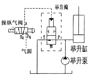 OJF—E15(20)L型氣控舉升閥的原始位置P口與T口是連通的(常開式結(jié)構(gòu))。該閥工作時(shí),利用壓縮空氣通過(guò)氣缸推動(dòng)閥芯封閉,油路由常通位置轉(zhuǎn)為工作位置,即實(shí)現(xiàn)車廂的舉升;切斷氣源P口與T口接通油液流入油箱,系統(tǒng)卸荷車廂下降。該閥的工作原理示意圖如下!